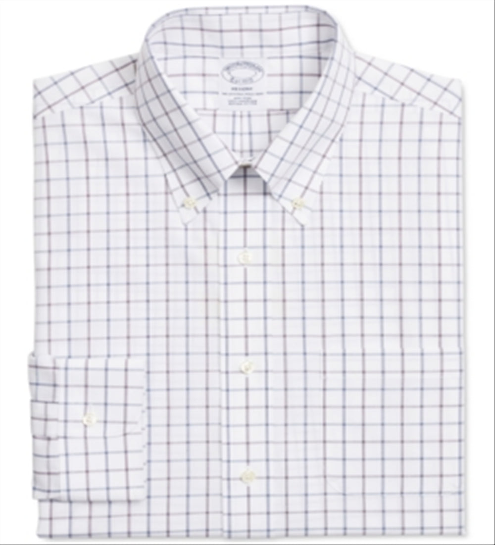 Camisa social masculina Brooks Brothers Regent Slim Fit Stretch, xadrez, sem passar, azul, tamanho 1...