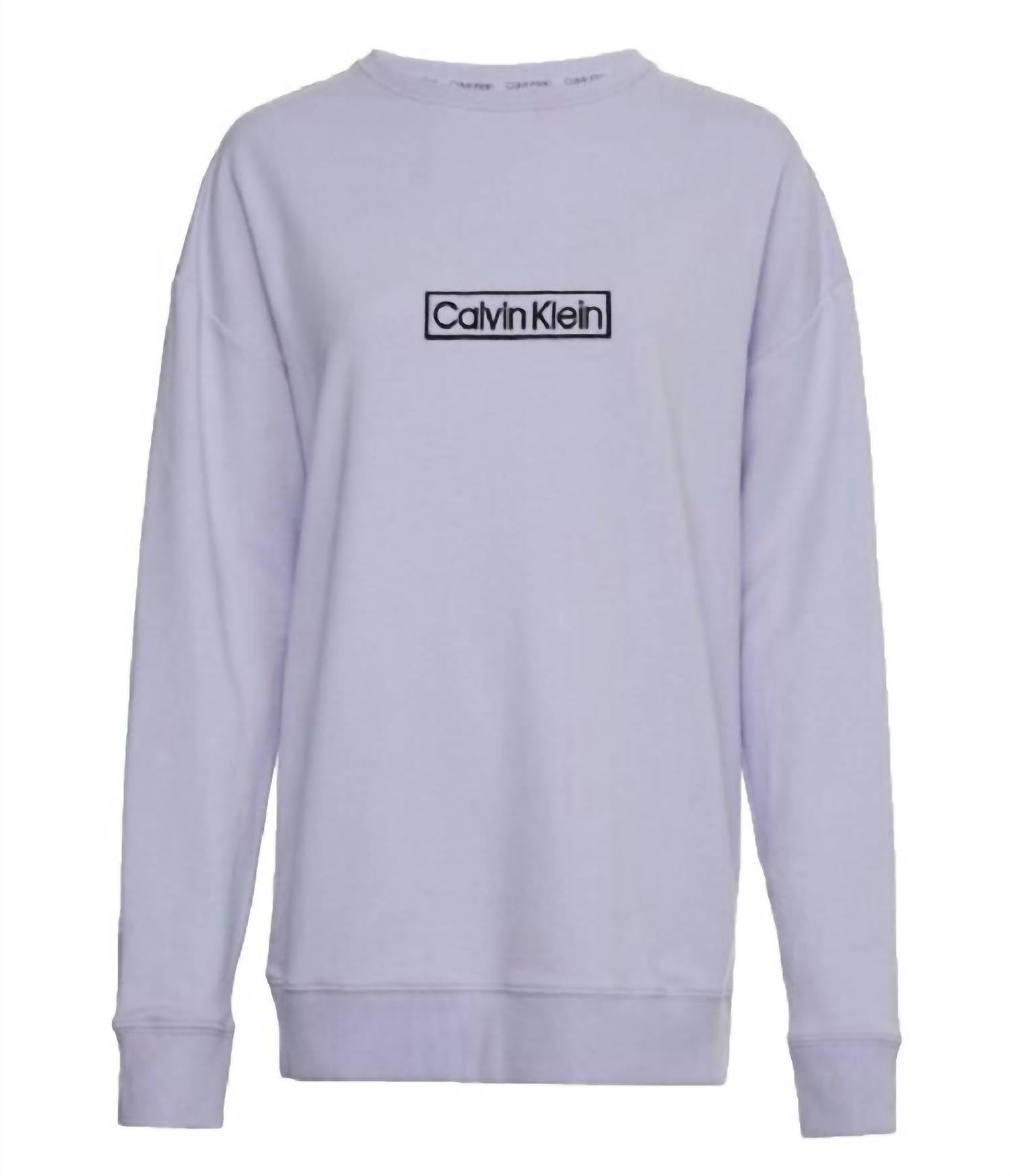 Introducing the Logo Sweatshirt by Calvin Klein, a minimalist piece perfect for travel and casual outings in a chic lilac hue. This women’s long sleeve sweatshirt features a crewneck and a pull-on closure, ensuring comfort and style without fuss. Crafted in a blend of 58% cotton, 39% recycled polyester, and 3% elastane, it provides a light and breathable feel while keeping you warm. Care instructions are simple: machine wash and tumble dry. The sweatshirt also boasts the iconic Calvin Klein logo on the chest and back, adding a graphic pattern to your wardrobe.