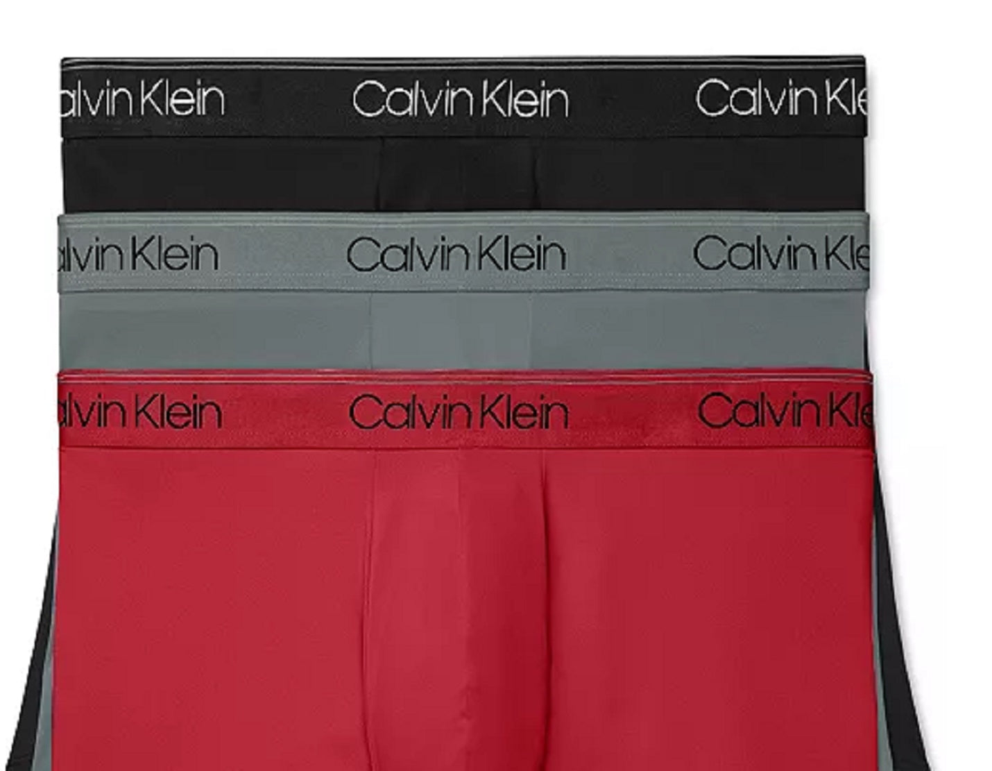 Pacote com 3 cuecas Calvin Klein masculinas de microfibra elástica de cintura baixa, tamanho grande, vermelhas