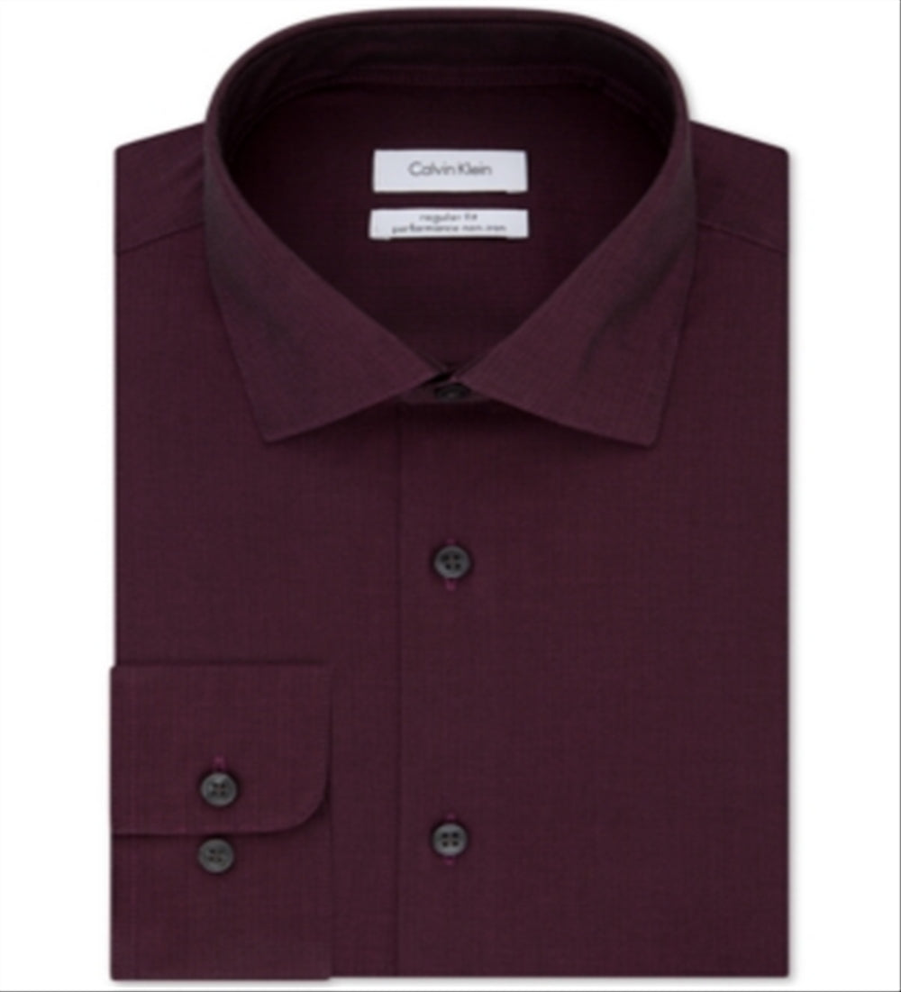 Camisa social masculina Calvin Klein Classic Fit, sem passar roupa, com gola aberta e espinha de peixe, tamanho 17,5-36/37
