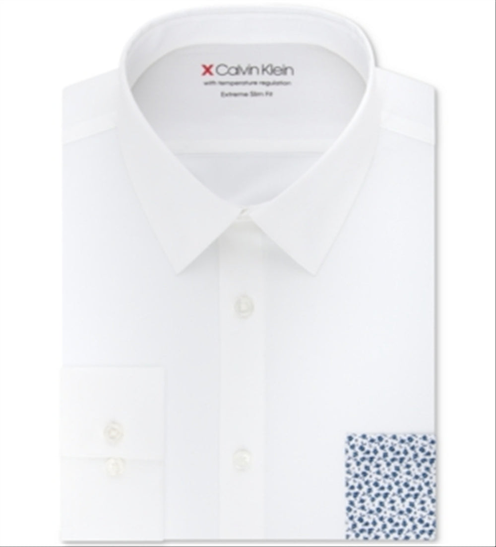 Camisa social masculina Calvin Klein com gola extra fina branca tamanho 15,5 x 32 x 33