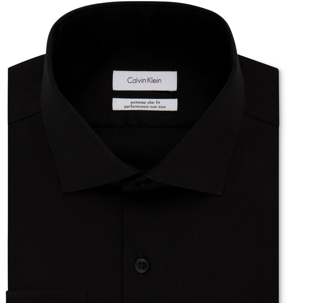 Camisa social masculina Calvin Klein Extra Slim Fit, não precisa passar, preta, tamanho 16x34x35