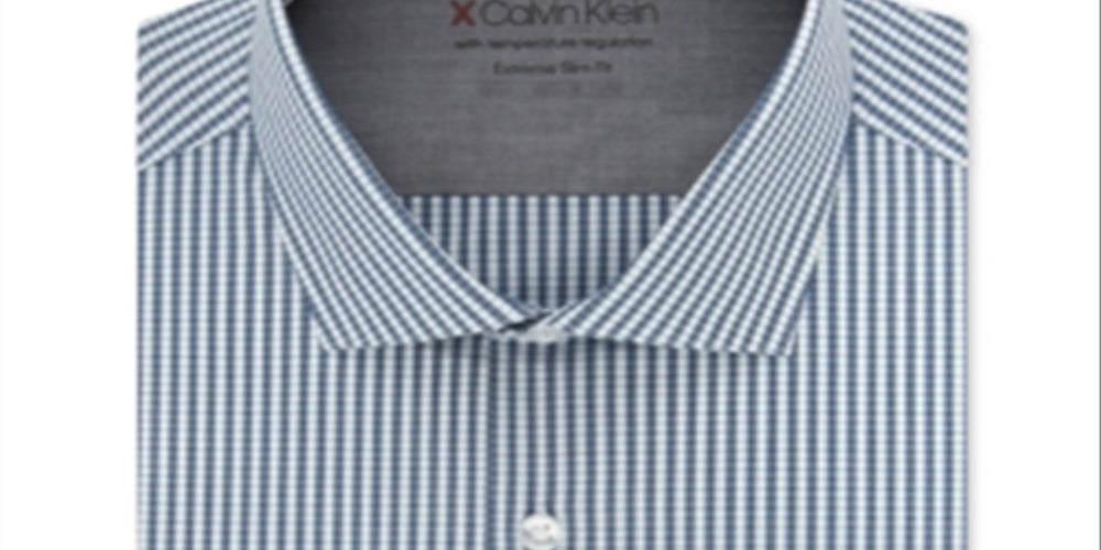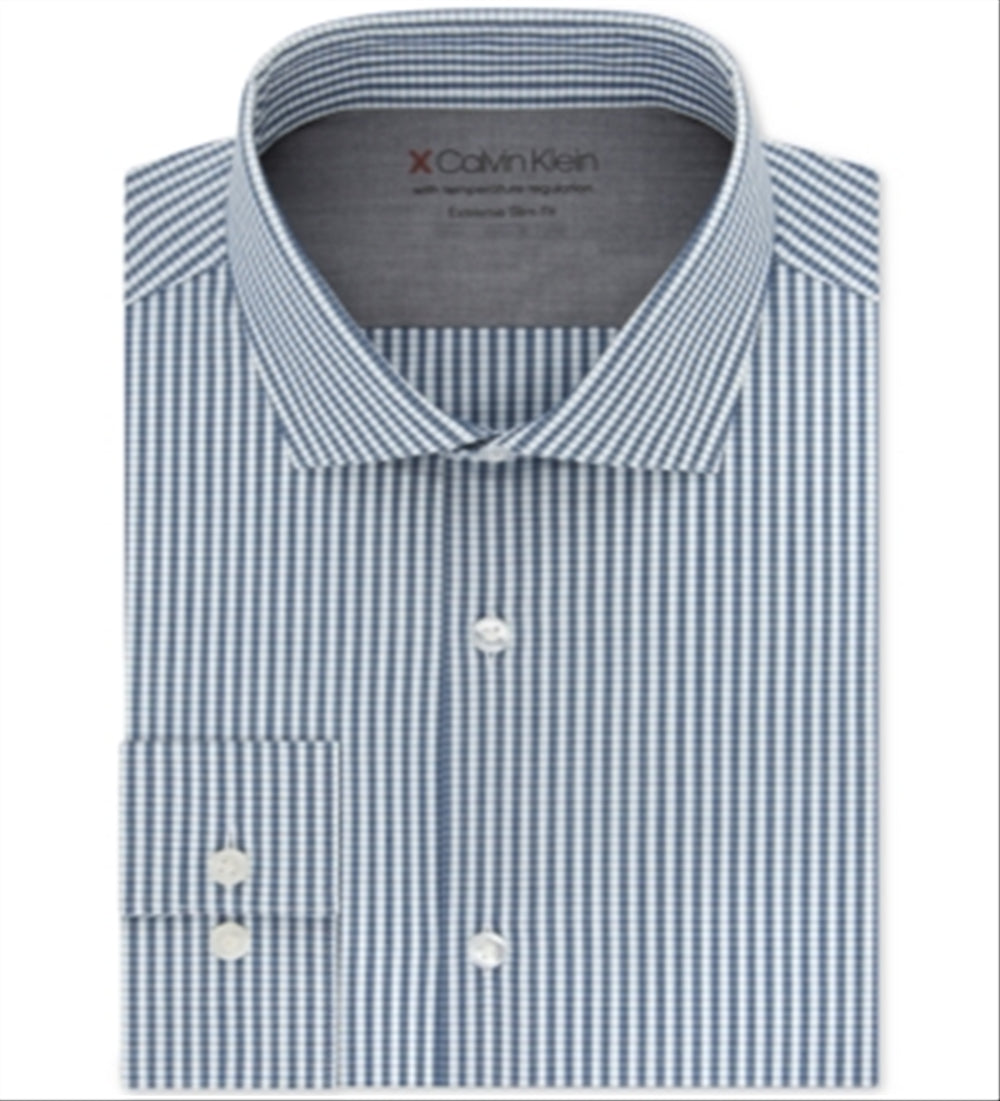 Camisa social masculina Calvin Klein Extra-Slim Fit Performance Stretch com regulagem de temperatura e xadrez, multicolorida, azul, tamanho 17,5x32-33