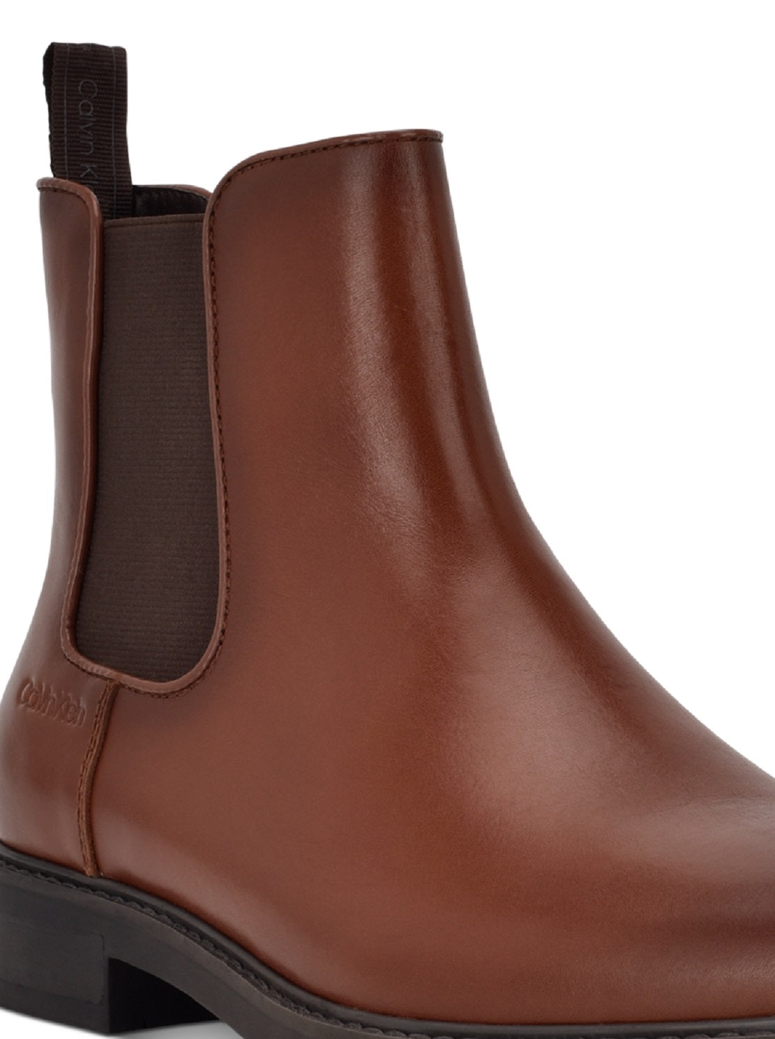Adicione um estilo atemporal e conforto ao seu guarda-roupa casual com estas botas Fenwick Chelsea da Calvin Klein. | Altura do cano; 5-63/100; Circunferência; 11-1/10; medida no tamanho 9 | Tênis de bico redondo | Elásticos para um ajuste flexível; puxador com logotipo no calcanhar | Cabedal de couro/tecido; forro sintético; sola de borracha | Importado