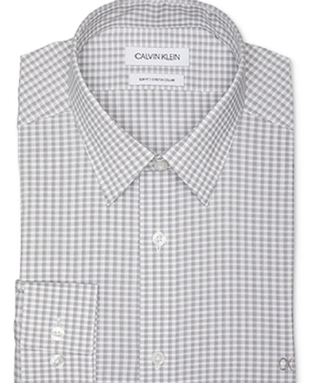 Camisa social masculina Calvin Klein com logo slim fit e gola elástica cinza, tamanho 16x34x35