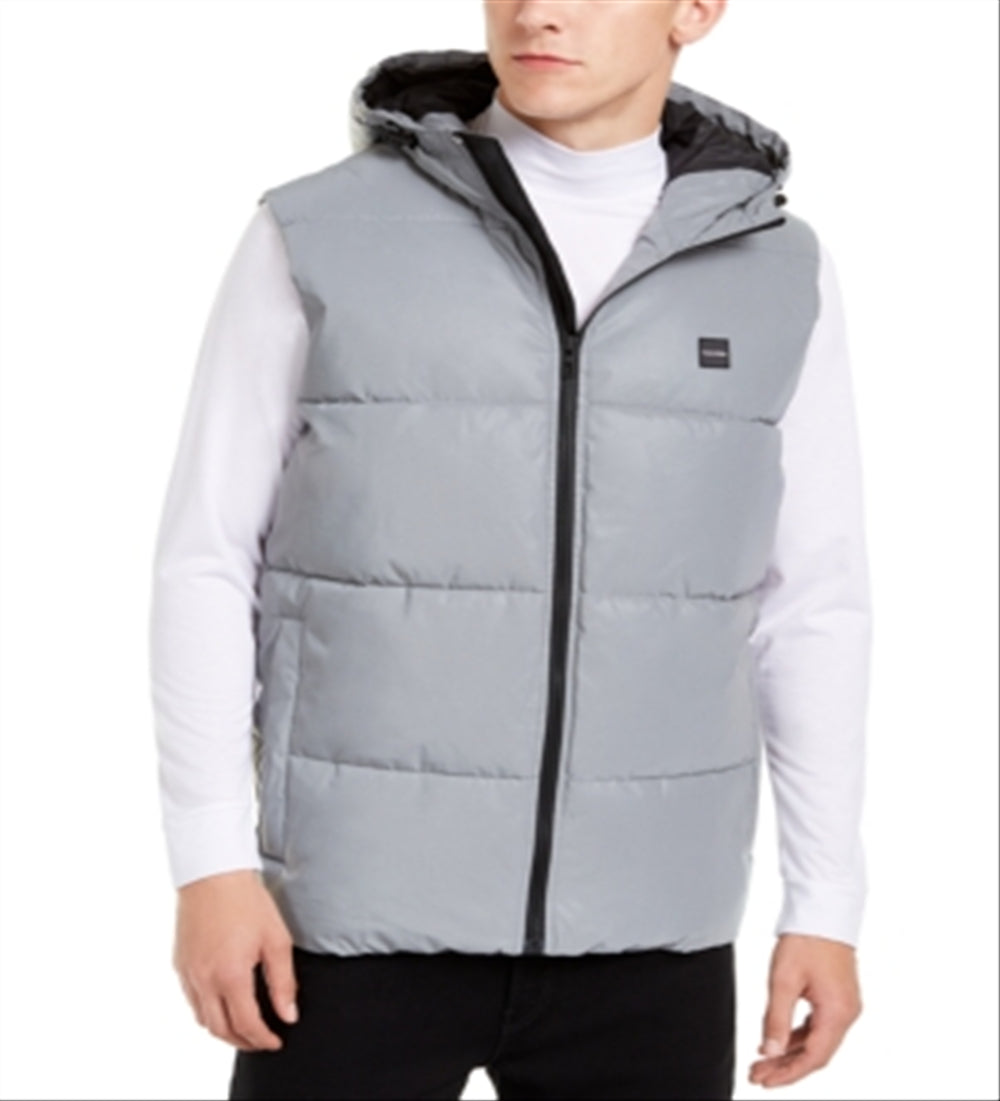 Leve estilo e aconchego de alto nível ao seu guarda-roupa para o frio com os detalhes ousados do logotipo e o design aconchegante do colete com capuz refletivo altamente visível da Calvin Klein