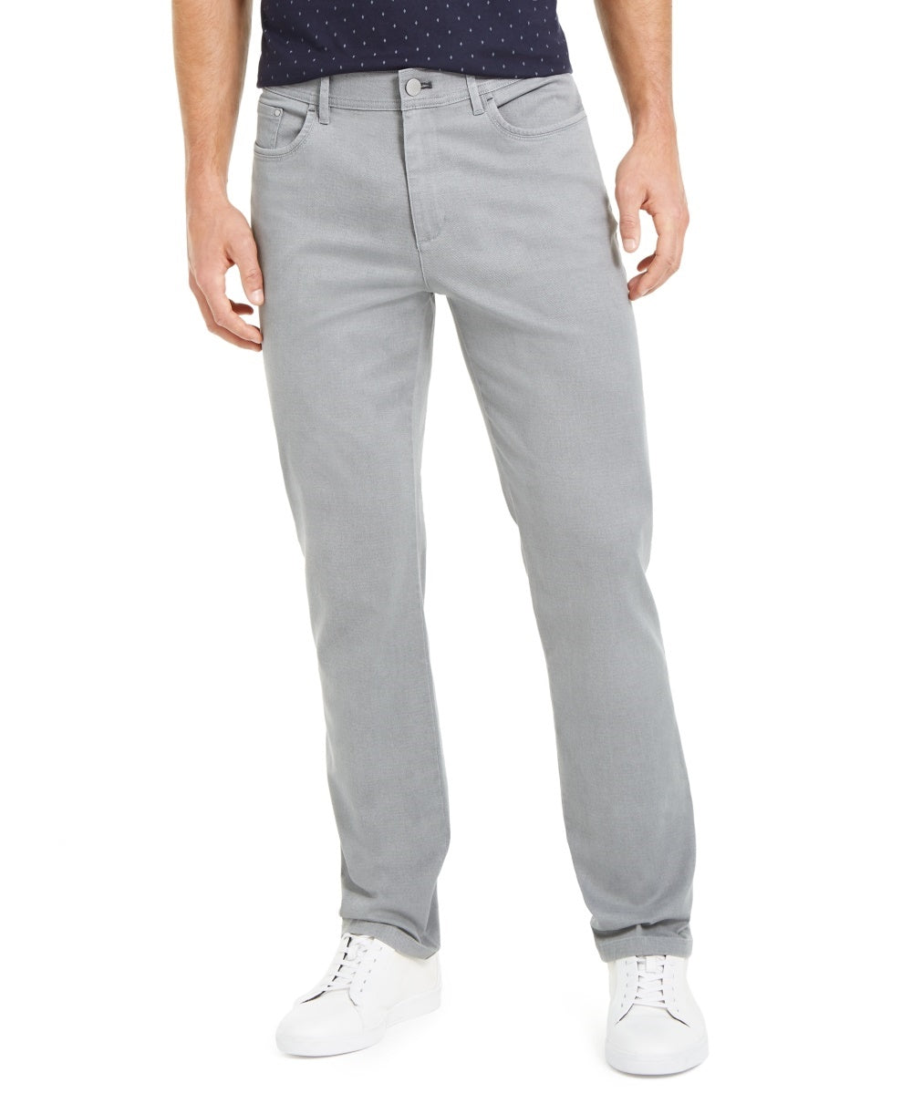 Cós frontal: 9 1/4"; Cós traseiro: 13 1/4"; Abertura da perna: 14 3/4" | Corte slim | Braguilha com zíper e botão | Dois bolsos frontais; bolso para moedas; dois bolsos traseiros | Algodão/elastano