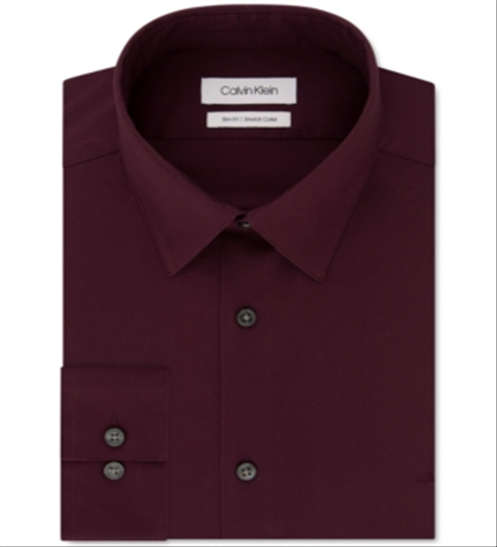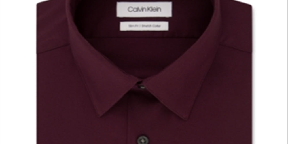 Camisa social Calvin Klein masculina slim fit com gola flexível elástica, tamanho vinho, 17,5 x 34-35