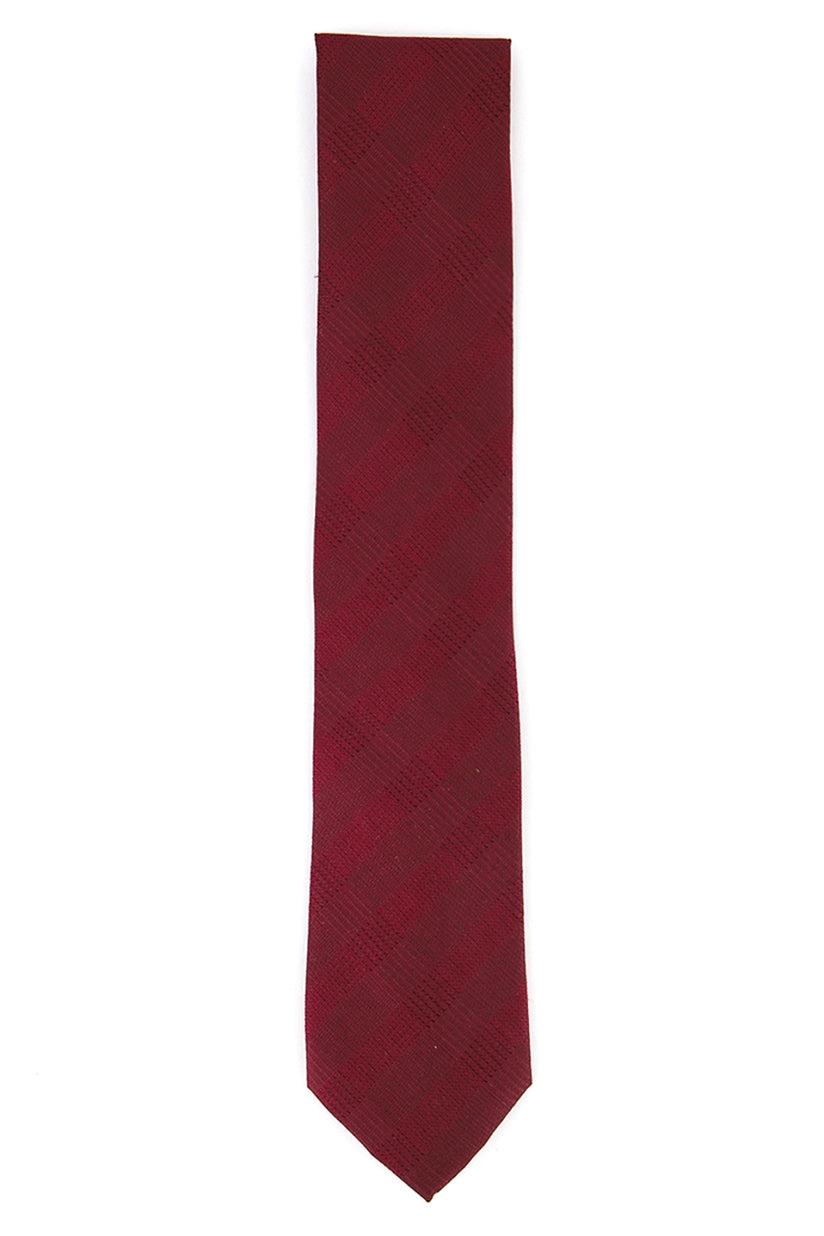 Gravata Calvin Klein Masculina Slim Tonal Xadrez de Seda Vermelha Escura Tamanho Regular