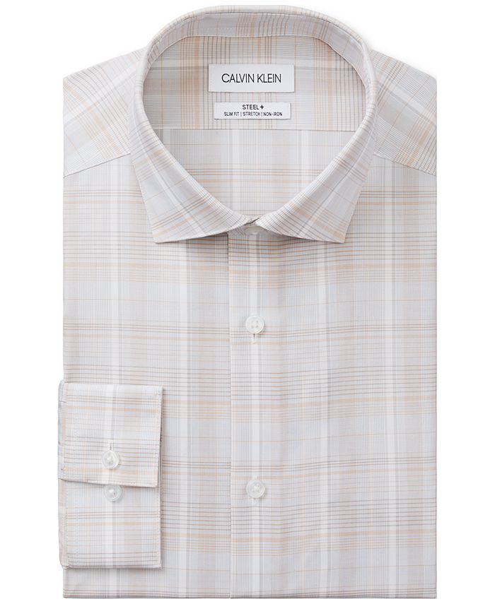 Camisa social masculina Calvin Klein Steel Slim-Fit, sem necessidade de passar, xadrez elástica, tamanho amarelo, 15,5 x 32-33