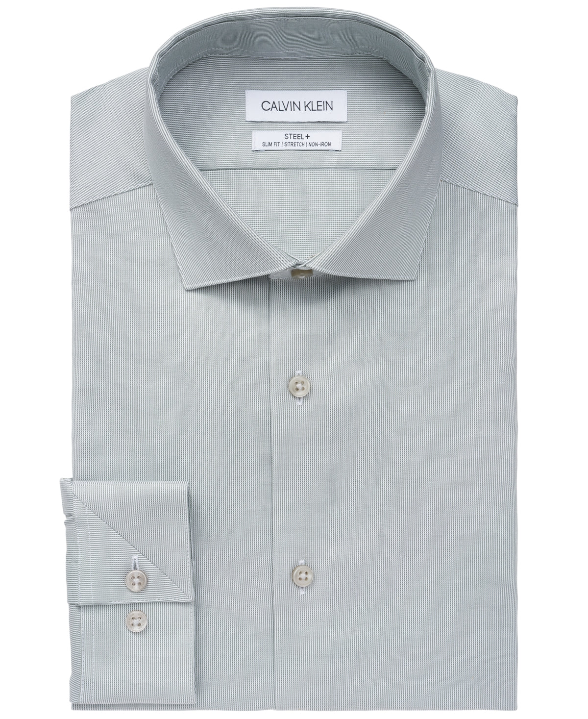 Camisa social masculina Calvin Klein Steel Slim-Fit Stretch Performance, sem necessidade de passar, verde, tamanho 17,5 x 32-33
