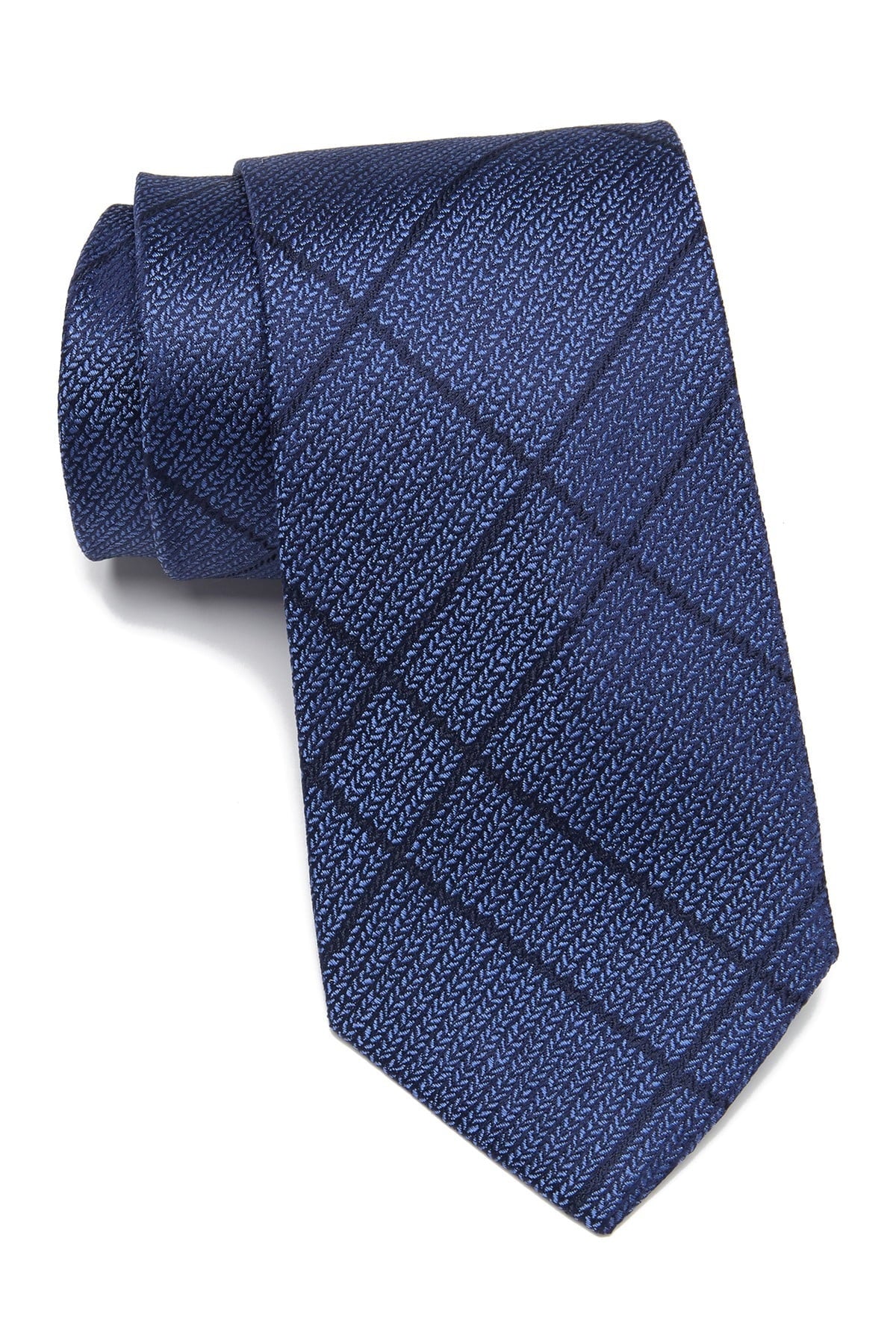 Gravata Calvin Klein Masculina Stitch Plaid Slim Silk Azul Tamanho Único