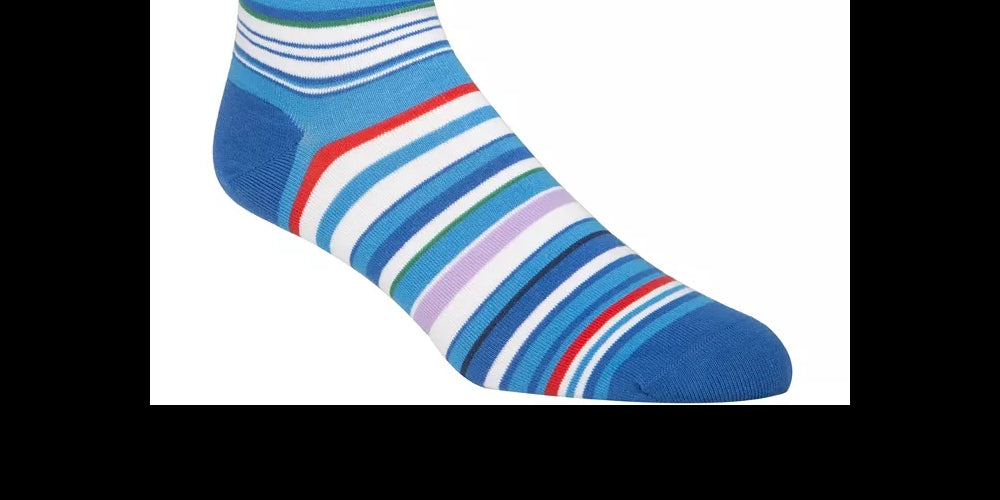 Meias masculinas Calvin Klein | Comprimento médio | Calcanhar e biqueira reforçados | Costura na biqueira unida à mão | Padrão de listras multicoloridas em toda a peça | Algodão/nylon/elastano
