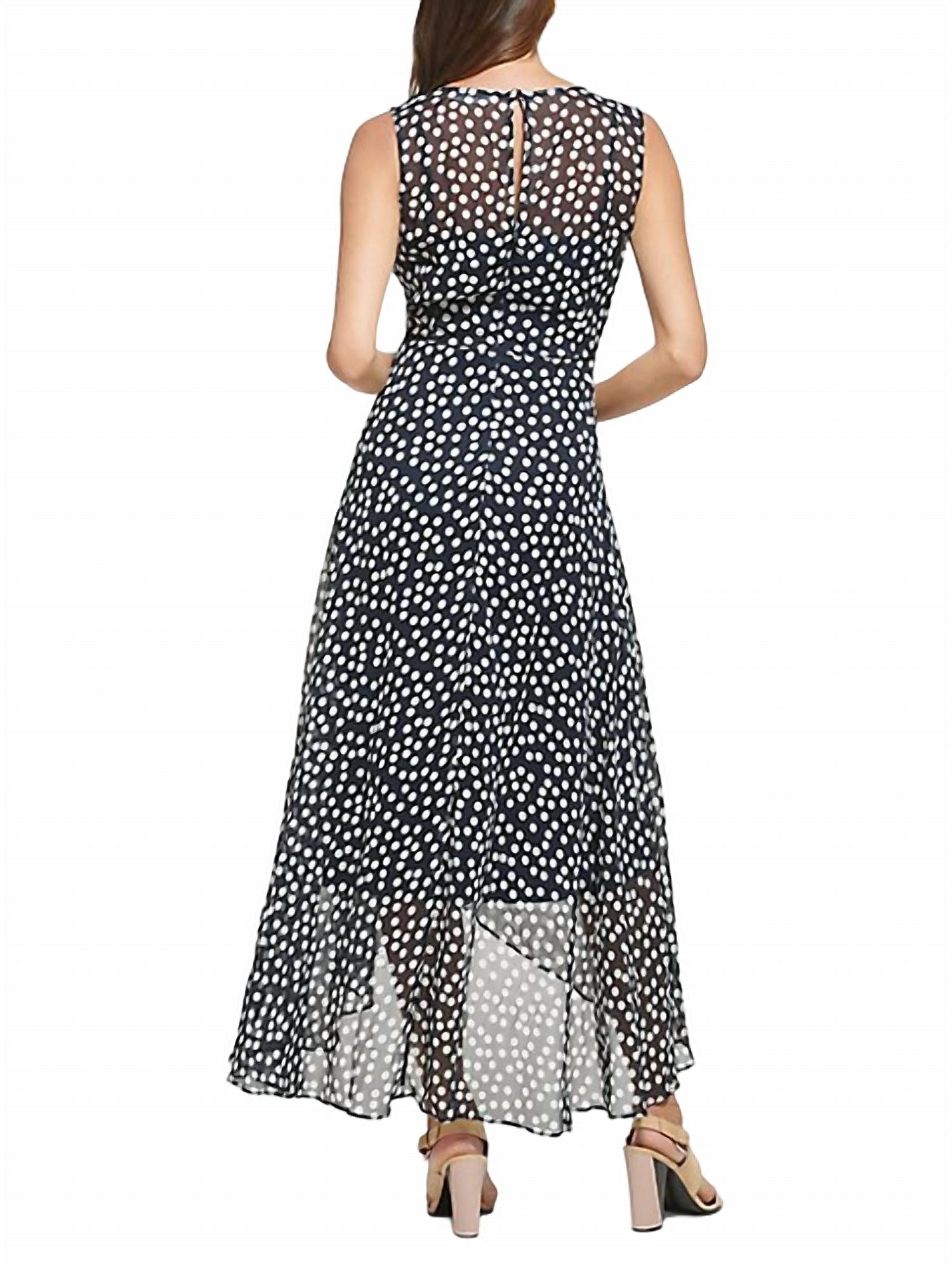 Um vestido midi tão versátil que suas opções de uso são infinitas. Decote sobrepeliz, sem mangas, zíper invisível nas costas com abertura e fecho de botão e alça, cintura ajustada, saia tulipa alta e baixa e forro com alças finas ajustáveis. Lavagem a seco. 100% chiffon de poliéster.