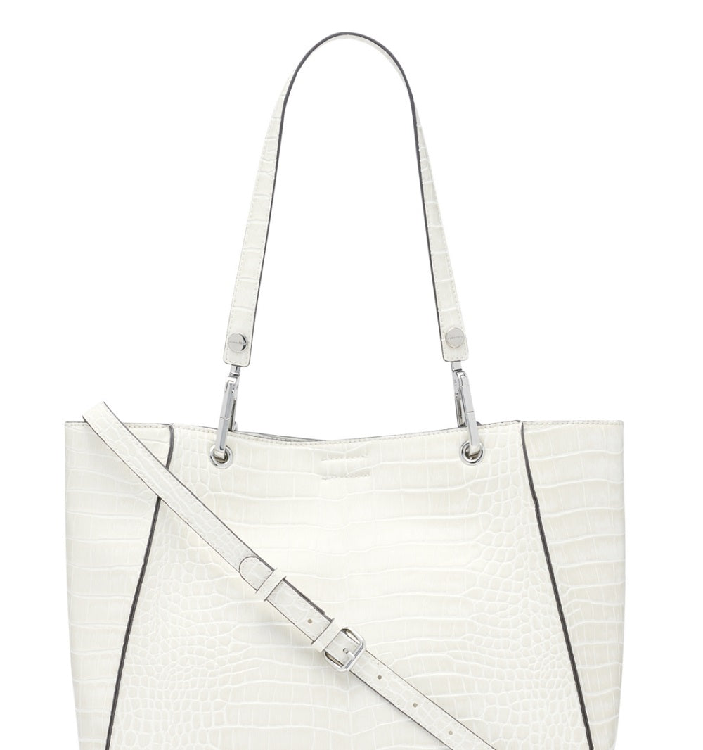 A bolsa tote Garnet da Calvin Klein tem um design elegante e clássico. | Material: croco brilhante - 100% poliuretano | Forro e acabamento: poliéster | Bolsa de tamanho médio | 14 L x 12,25 A x 6,25 P | Tipo de alça: 11 L | Fecho magnético