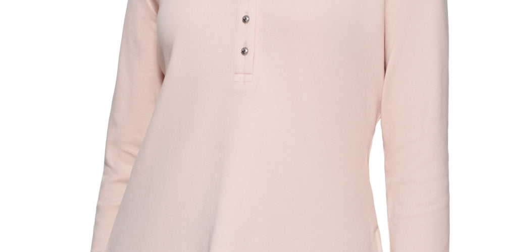 Calvin Klein Feminino Manga 3/4 Botões Frontais Henley Rosa Tamanho Médio