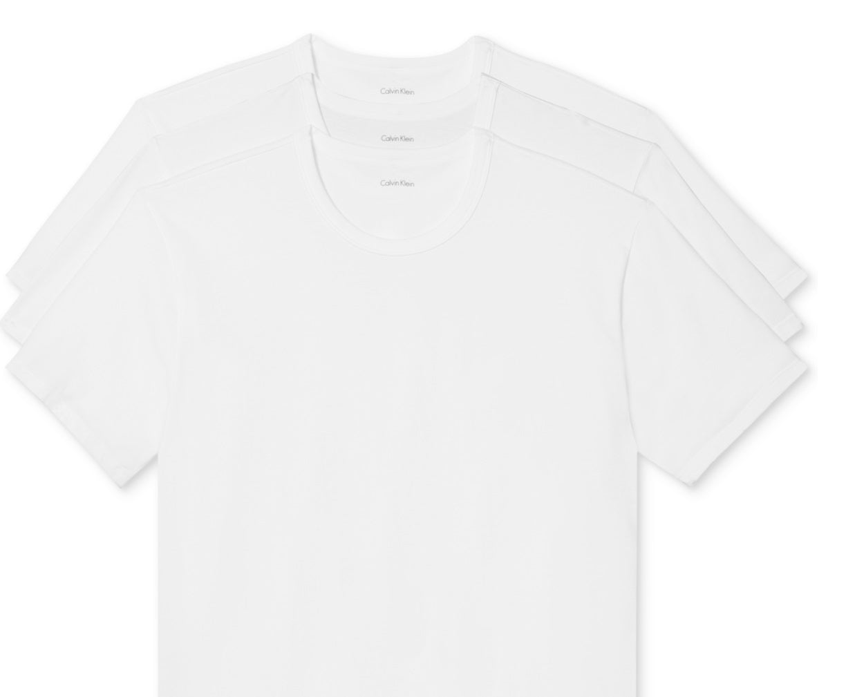Calvin Klein Camiseta Feminina Gola Redonda de Algodão Elástico, Pacote com 3, Branca, Tamanho Pequeno