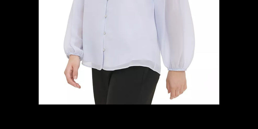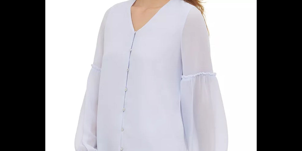 Aprox. 26-1/2 de comprimento | Decote em V | Mangas compridas com babado acima do cotovelo | Forrado | Revestimento externo; forro; poliéster | Lavável à máquina