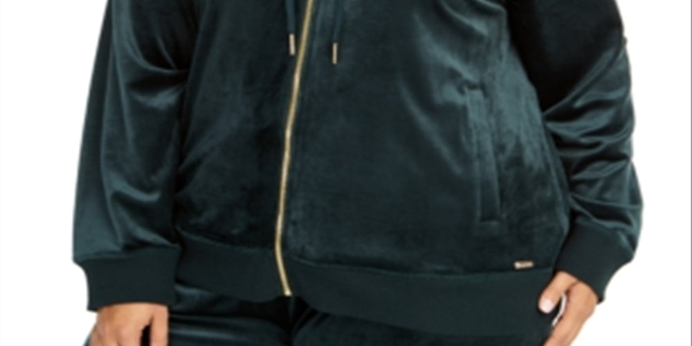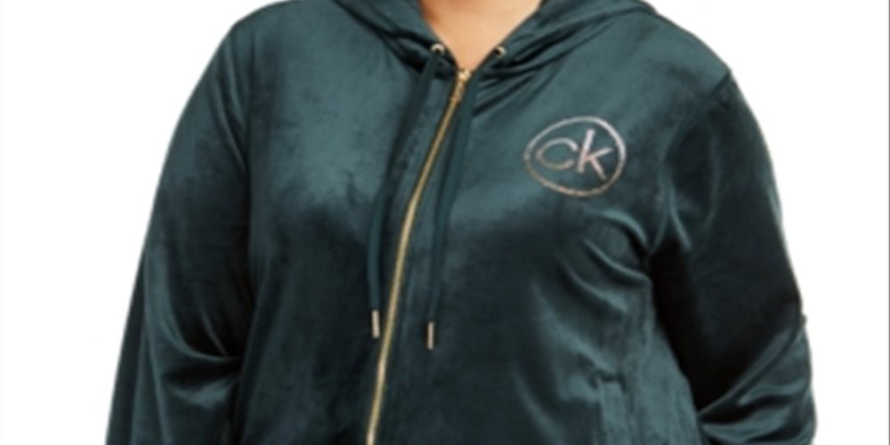 Dê um toque de brilho à sua vida ativa | Um logotipo brilhante com contas, além de um zíper dourado e amarrações nas pontas, realçam o estilo esportivo deste moletom com capuz plus size da Calvin Klein
