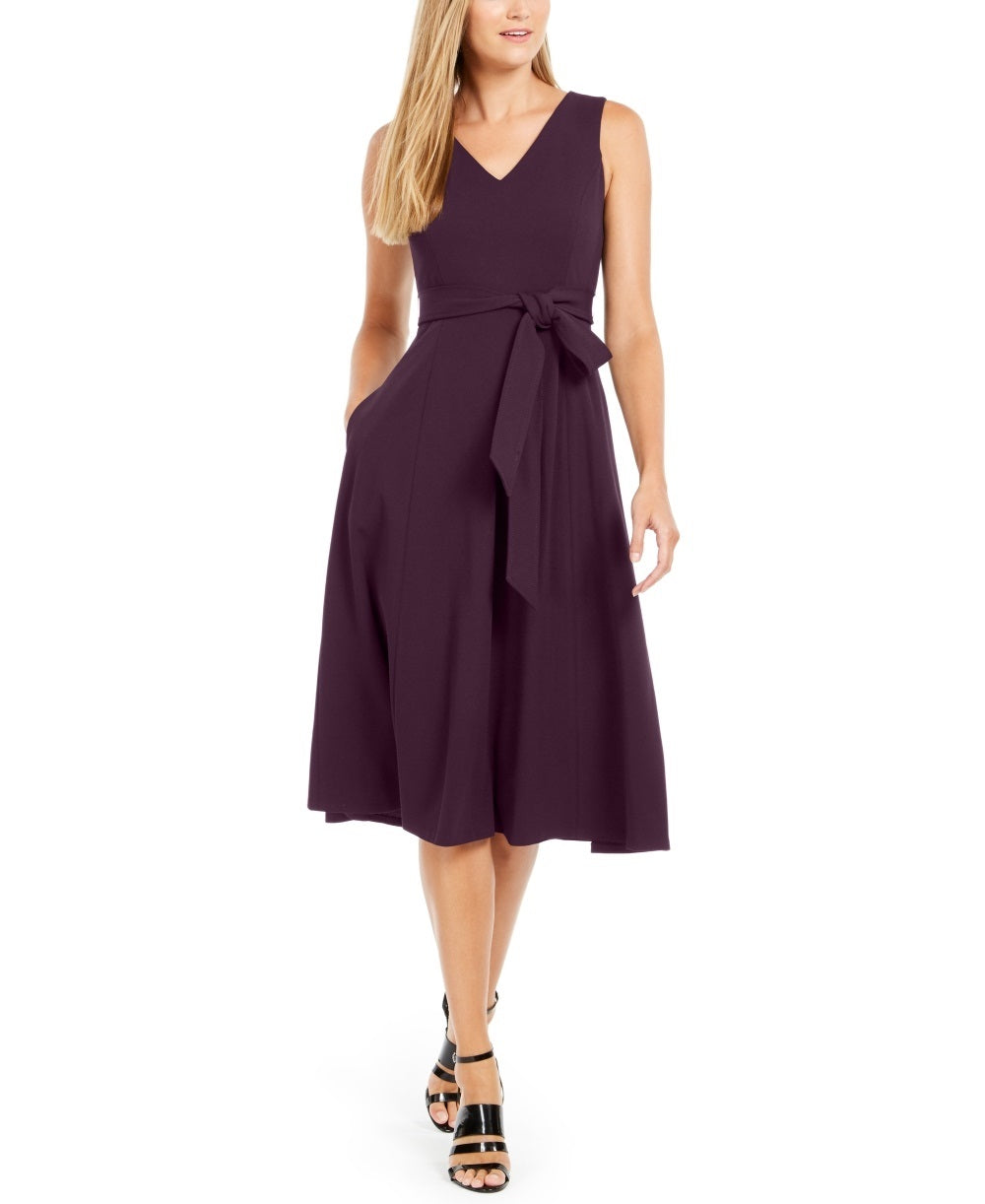 Vestido Calvin Klein Feminino com Cinto e Decote em V Roxo Tamanho 2