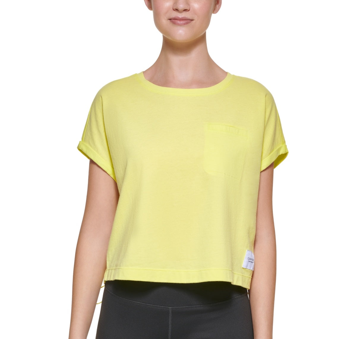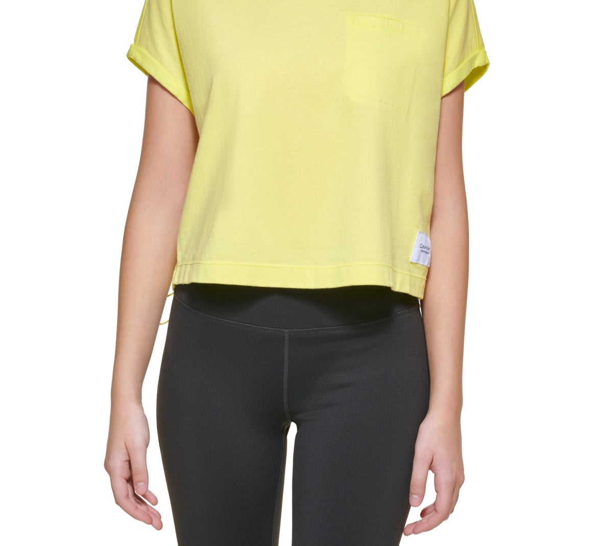 Camiseta Calvin Klein Feminina com Bolso e Bainha Elástica de Algodão, Amarela, Tamanho Grande