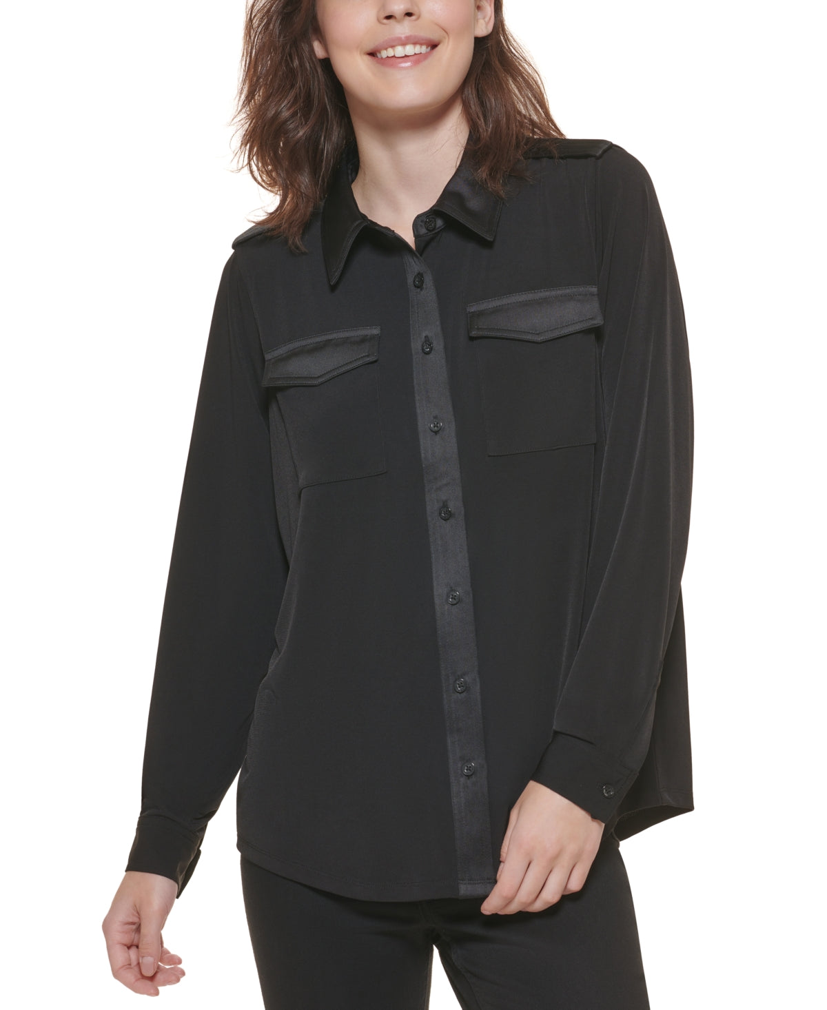 Uma versão chique de um modelo abotoado e sob medida é finalizada com bolsos no peito para um visual elegante da Calvin Klein. | Comprimento aproximado de 70 cm | Botões frontais; bolsos no peito | Poliéster/elastano | Lavagem à mão | Importado