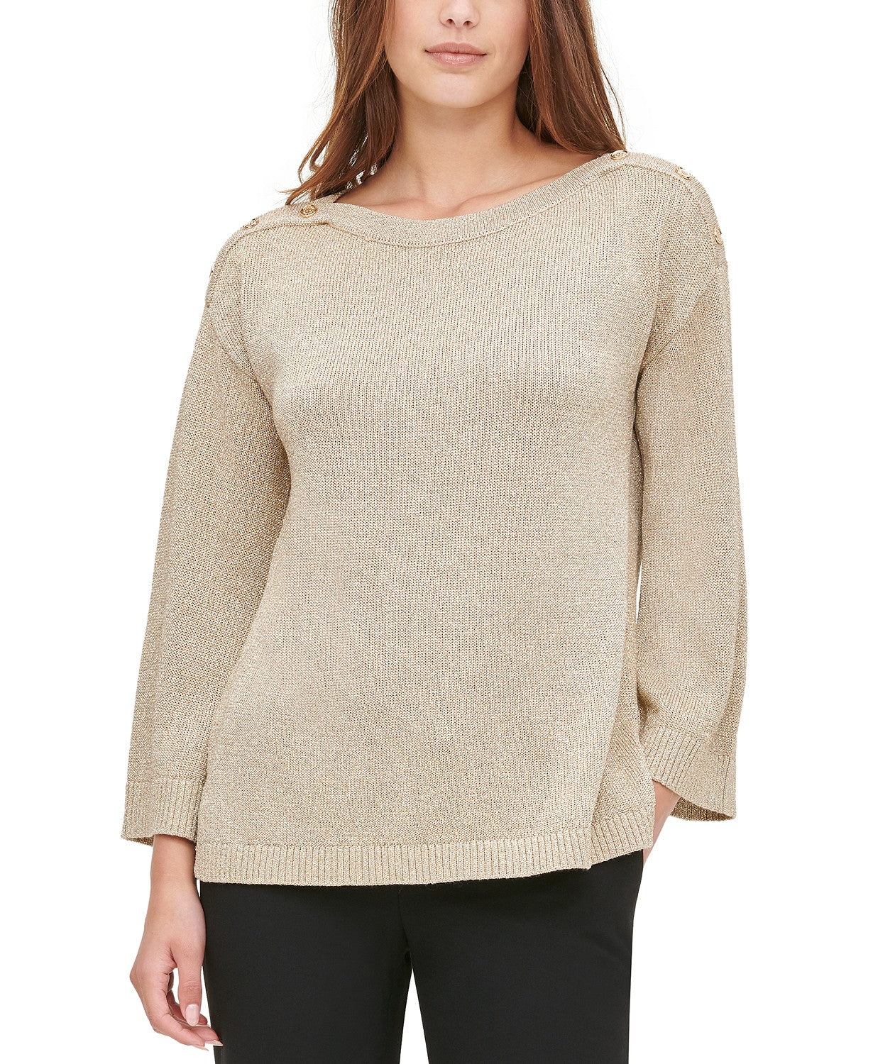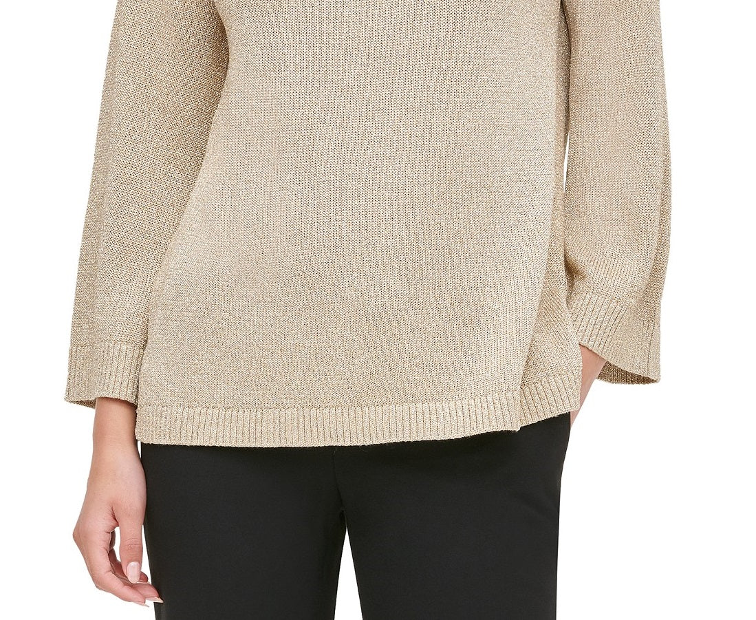Calvin Klein Suéter Feminino Metálico com Botões nos Ombros Marrom Tamanho P