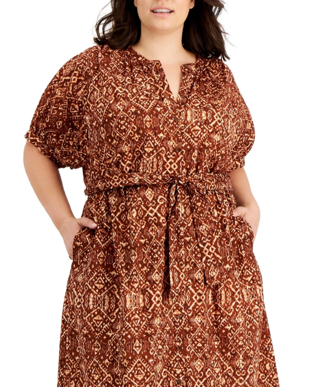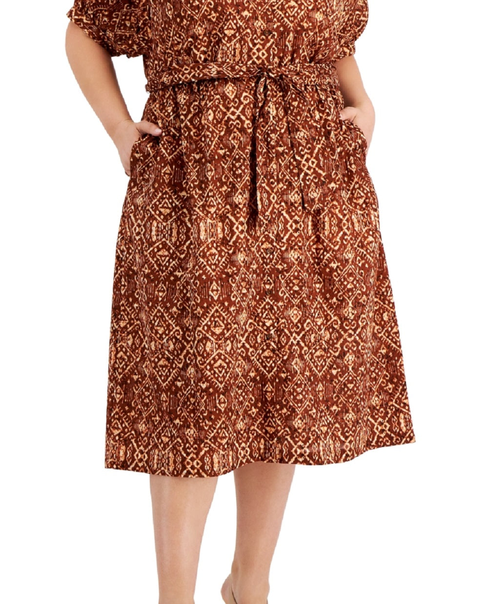 Aperfeiçoe seu estilo com o vestido-camisa midi atemporal plus size da Calvin Klein, com estampa ousada e mangas bufantes.