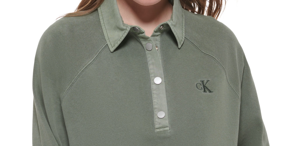Calvin Klein Polo Moletom Feminino de Algodão Verde Tamanho X-G