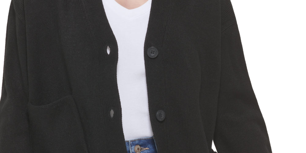 Cardigan feminino Calvin Klein com recorte e decote em V, preto, tamanho médio