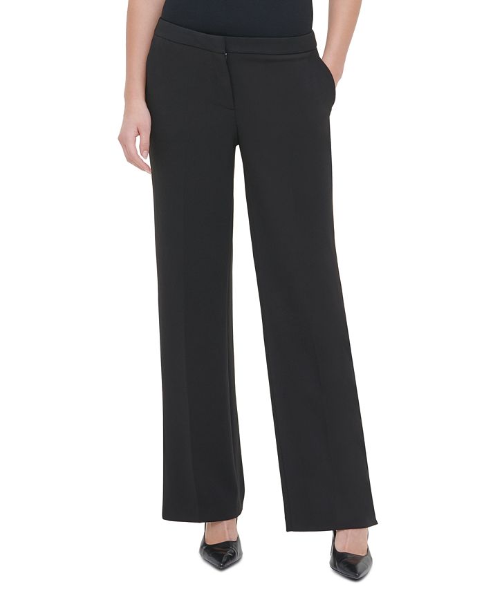 Fendas elegantes acentuam pernas largas e fluidas para atualizar este visual da Calvin Klein. Calças elegantes que são o ponto de partida para conjuntos estilosos infinitos. | Costura interna aprox.; 32 | Cintura média; pernas largas com fendas | Fecho de gancho flexível | Bolsos nas costuras laterais