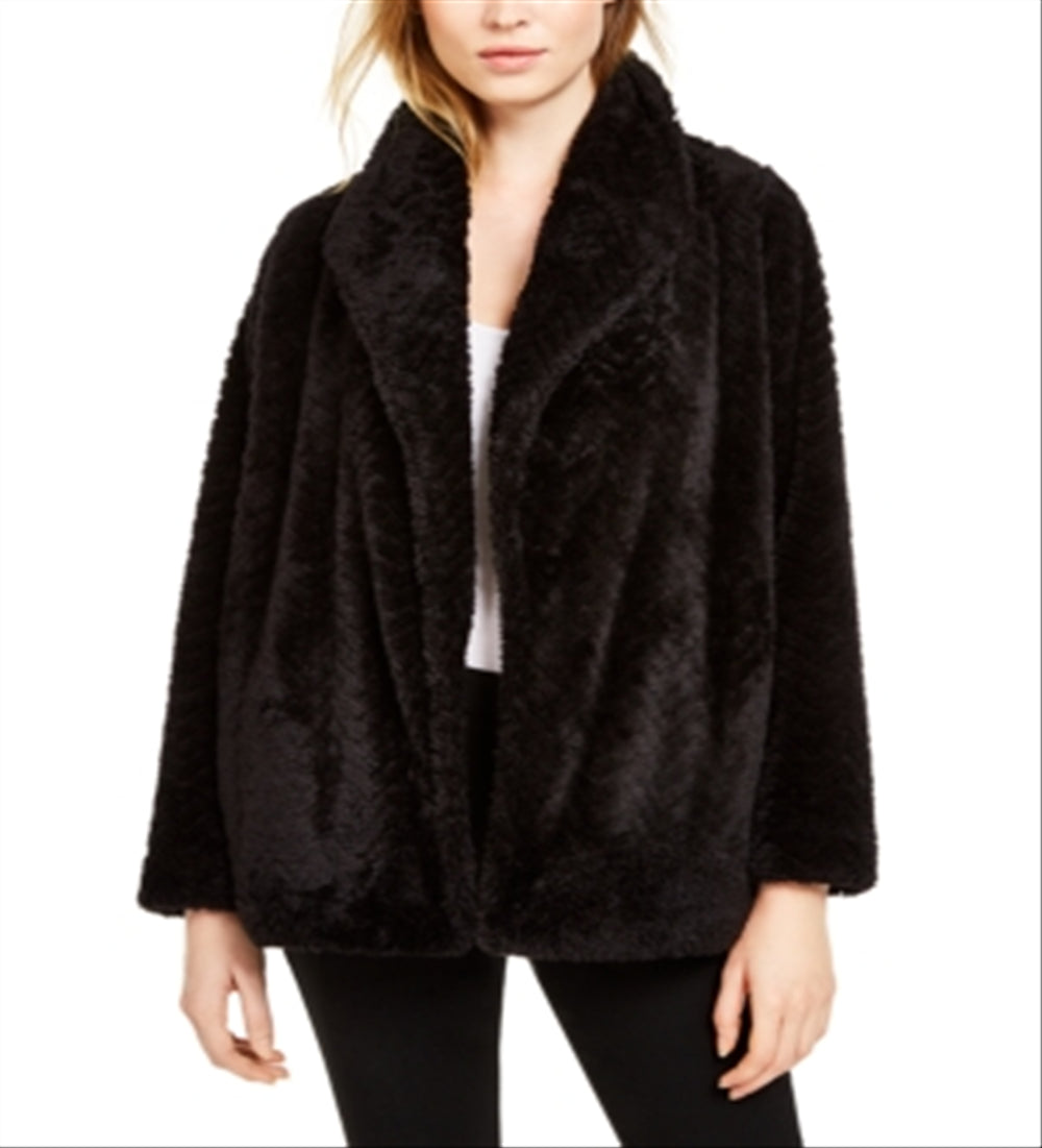 Calvin Klein Casaco de lã feminino com frente aberta, preto, tamanho médio