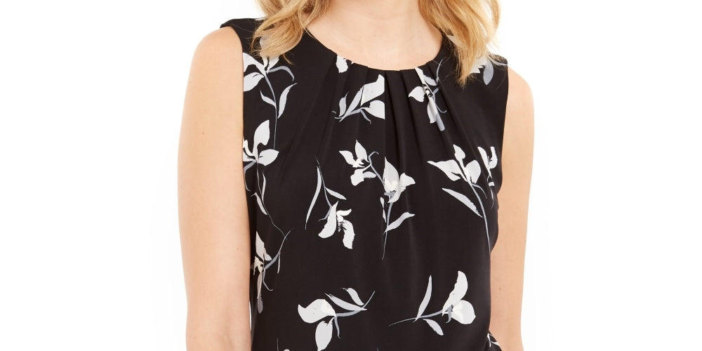 Blusa feminina Calvin Klein sem mangas com decote plissado e estampa floral, cinza, tamanho pequeno