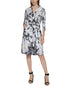 Calvin Klein tem o seu estilo elegante em mente com este vestido evasê lindamente estampado, com cinto de amarração e dois bolsos práticos. | Aproximadamente 96 cm de comprimento, do centro do pescoço até a bainha. O comprimento é baseado no tamanho 6 e varia 1/4 entre os tamanhos. | Ajustado no peito e na cintura; a saia evasê estruturada assenta ligeiramente sobre os quadris. | Decote em V; silhueta evasê. | Zíper traseiro oculto com fecho de colchete. | Mangas 3/4. | Cinto de amarração; dois bolsos nos quadris.