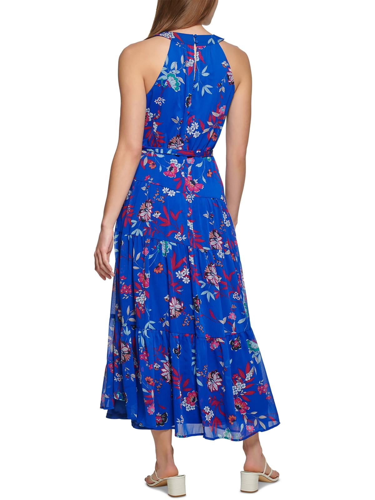 Vestido longo Calvin Klein feminino com estampa floral, cinto e alças finas, azul, tamanho 12, pequeno