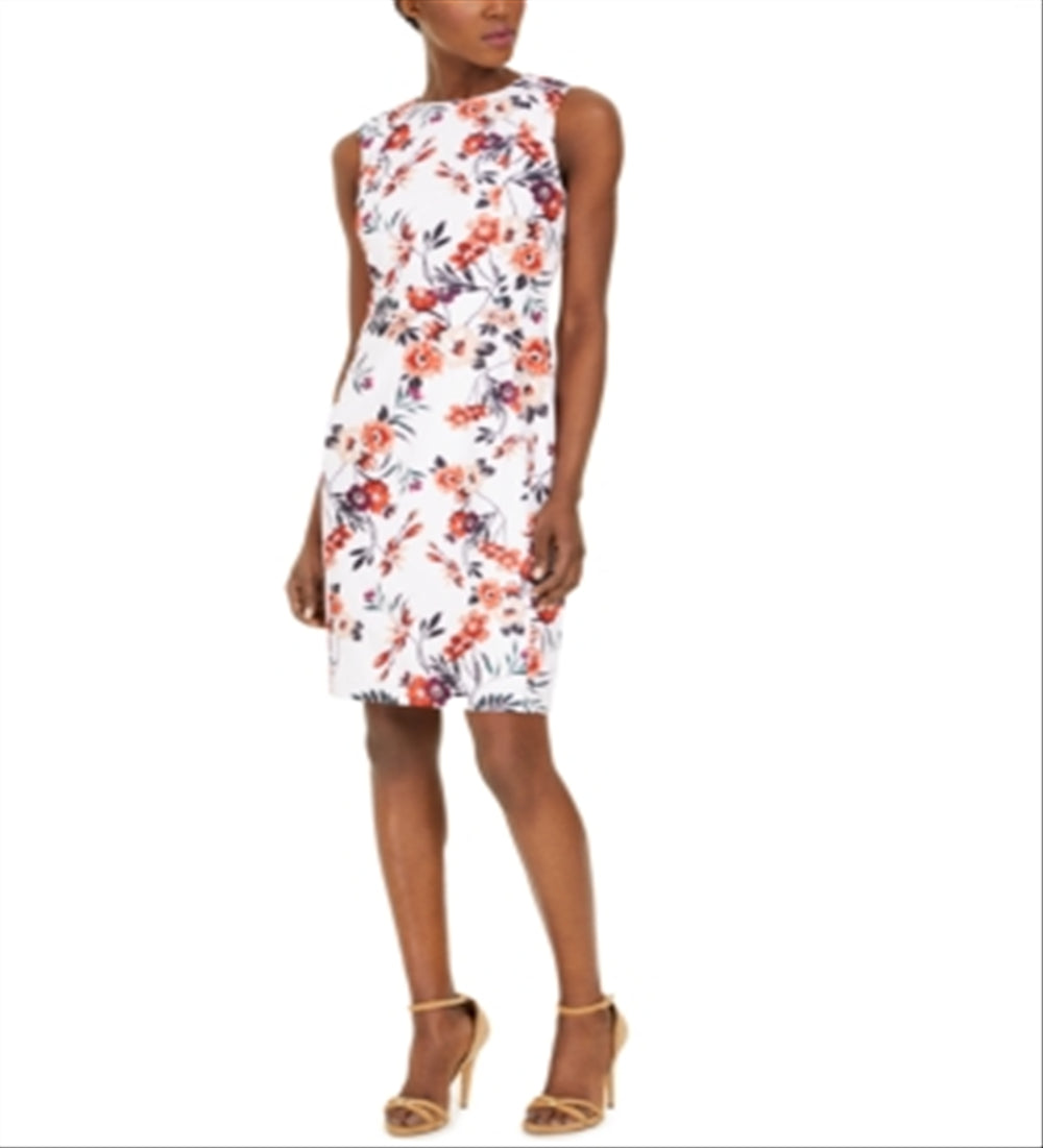 Vestido curto Calvin Klein feminino com estampa floral e bainha Scuba, rosa, tamanho 12