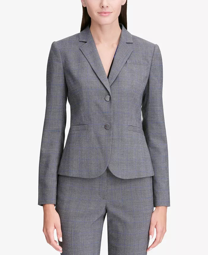 Jaqueta Calvin Klein Feminina Glen Plaid de Dois Botões, Prata, Tamanho 14