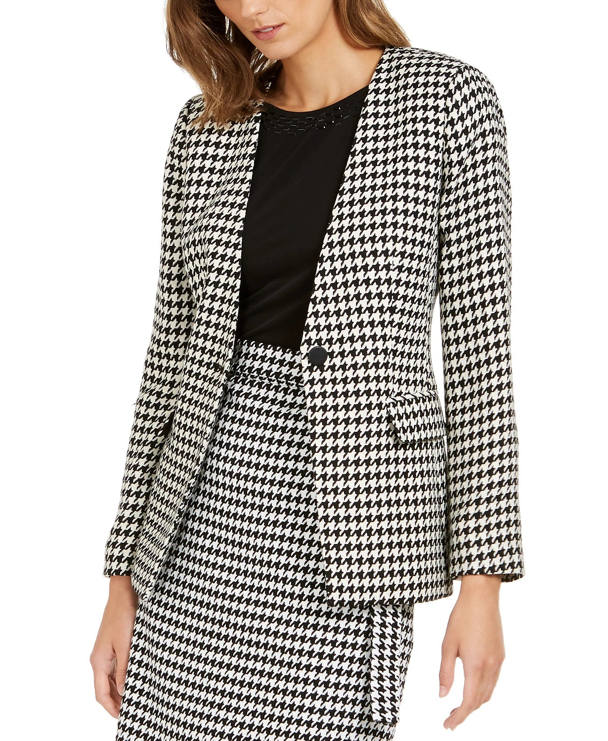 Comprimento aproximado: 26" | Sem gola; fecho de botão frontal | Bolsos com aba na frente | Forrado | Poliéster/rayon/elastano; forro: poliéster | Lavagem a seco