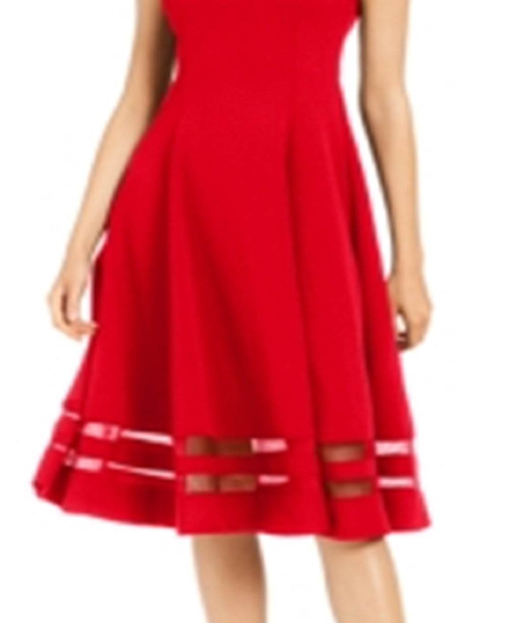 Vestido Calvin Klein Feminino Illusion Trim Fit Flare Vermelho Tamanho 14