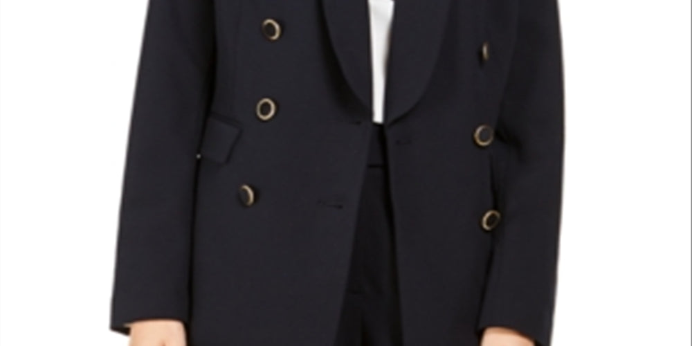 Jaqueta Calvin Klein Feminina de Malha com Botões Duplos na Frente Azul Tamanho 16