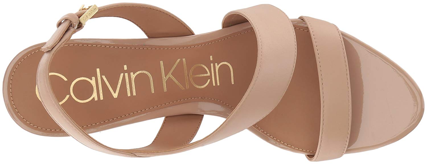 Calvin Klein Lancy Nappa Feminino Biqueira Aberta Salto com Tira no Tornozelo Sapato Social Casual Marrom Tamanho 11 M