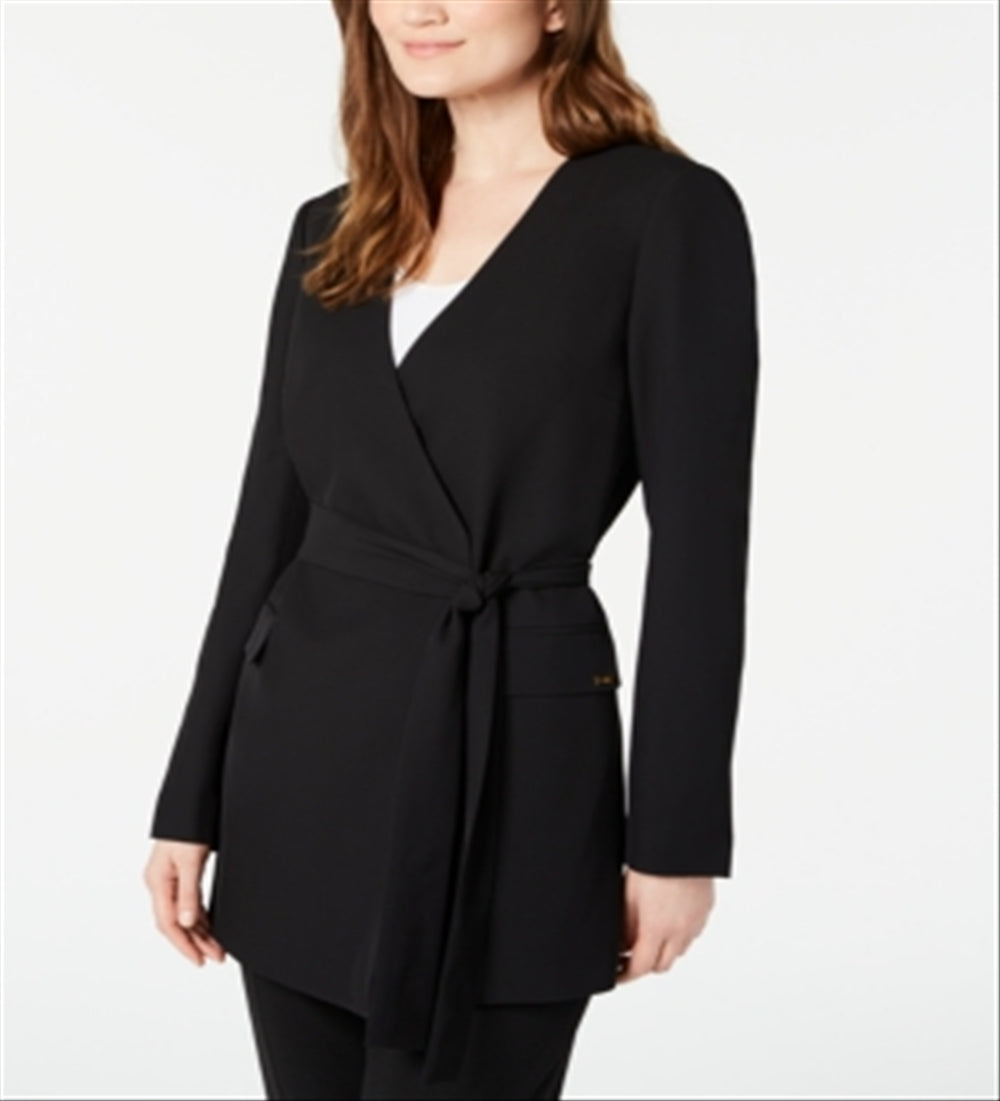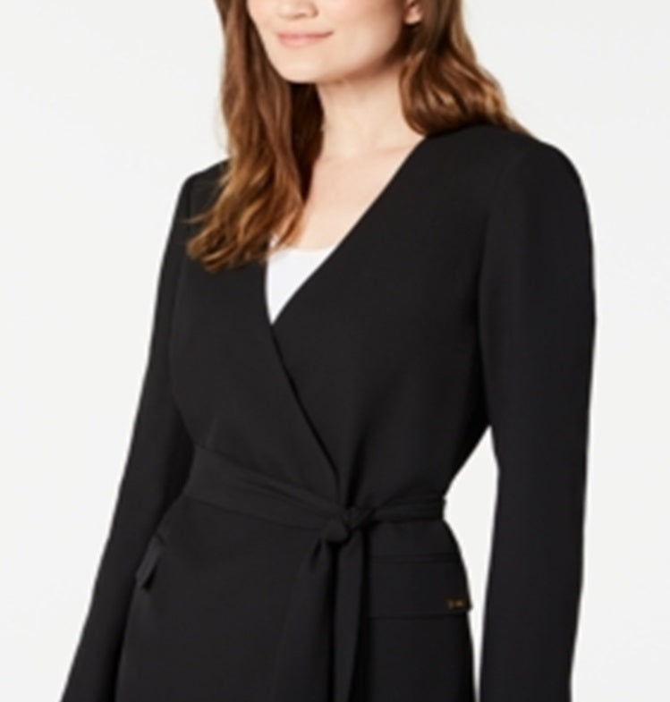 Calvin Klein Blazer Feminino Longo com Cinto Preto Tamanho Médio