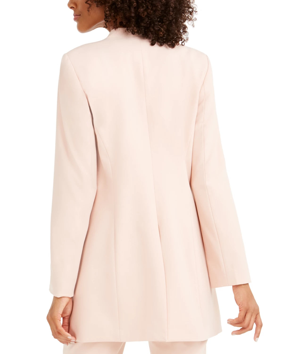Comprimento aproximado: 31" | Sem lapelas; frente aberta sem fechos | Forro listrado; ombreiras | Bolsos embutidos na cintura | Mangas dobradas | Forrado | Poliéster/rayon/elastano; forro: poliéster