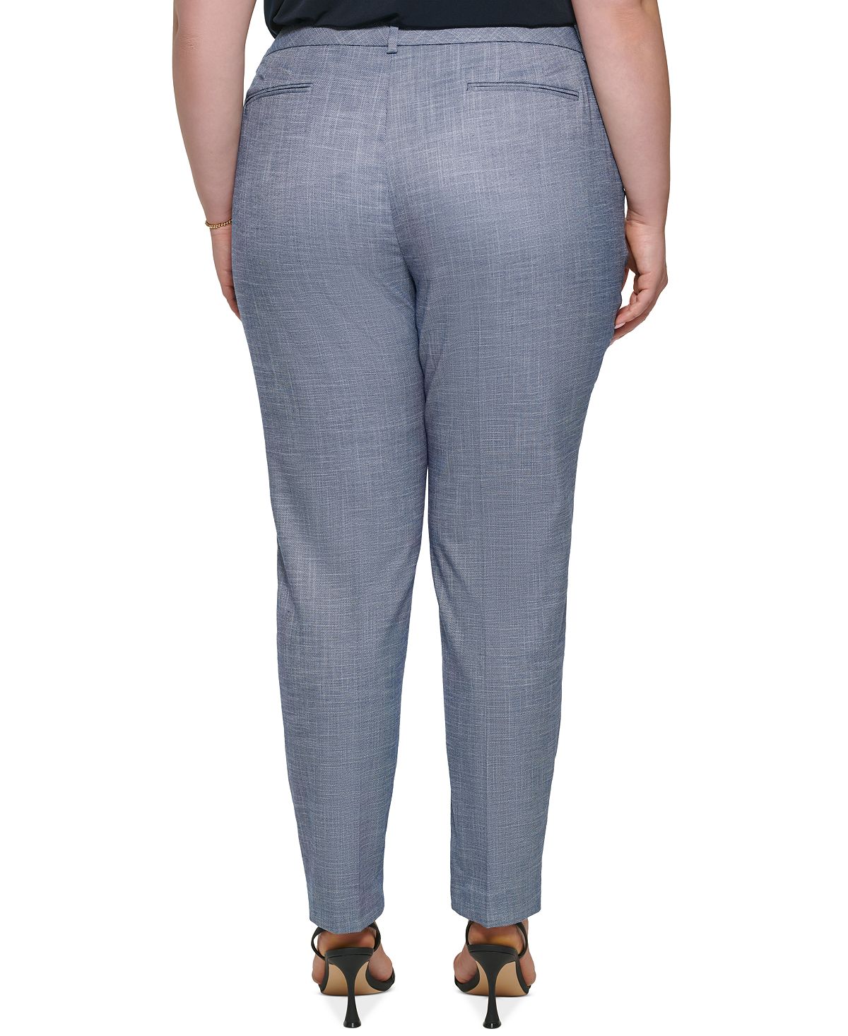 Versátil e estilosa | esta calça plus size da Calvin Klein pode ser usada com perna justa ou boca de sino, graças aos zíperes internos ocultos nos tornozelos. | Costura interna aprox.; 29-1/2 | Cós médio; corte reto nos quadris e coxas; perna reta | Fecho de velcro oculto com zíper; passantes para cinto | Zíperes nos tornozelos internos | Bolsos tipo faca nos quadris; bolsos embutidos atrás
