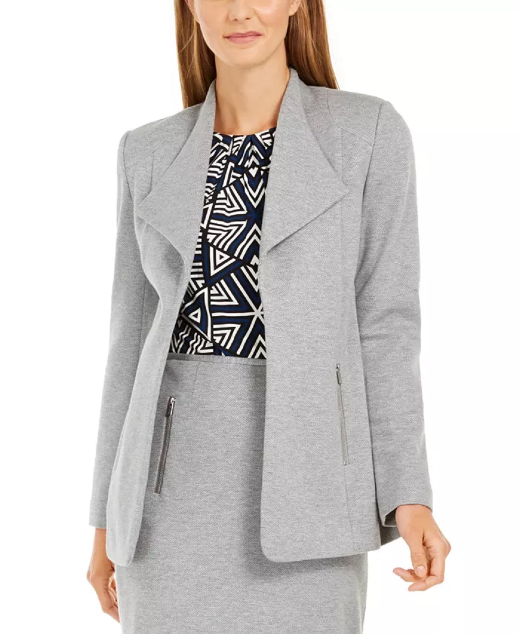Calvin Klein Blazer Feminino com Gola Asa Aberta na Frente Cinza Tamanho 12