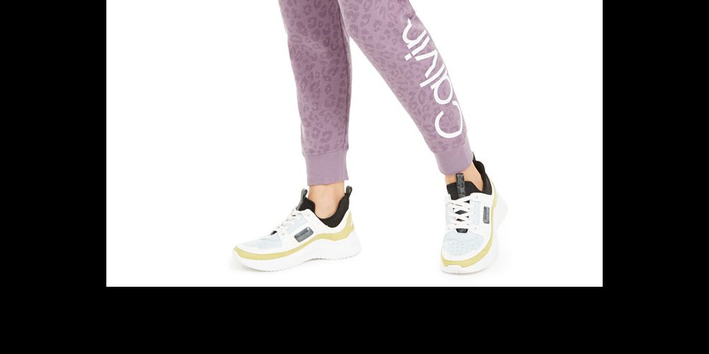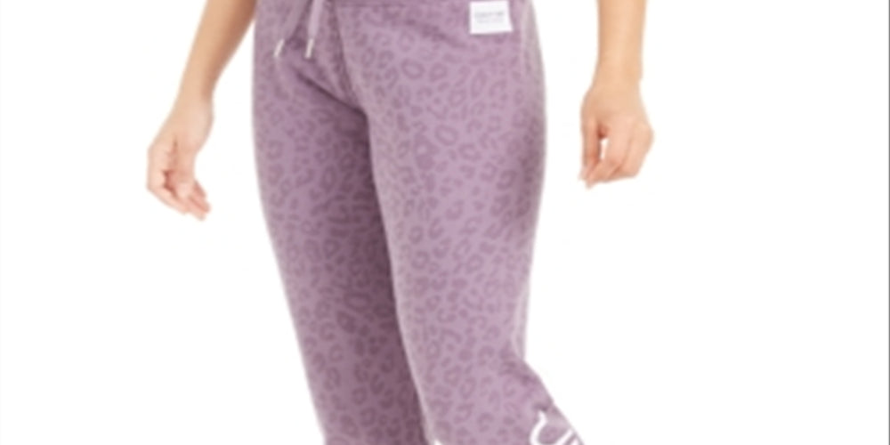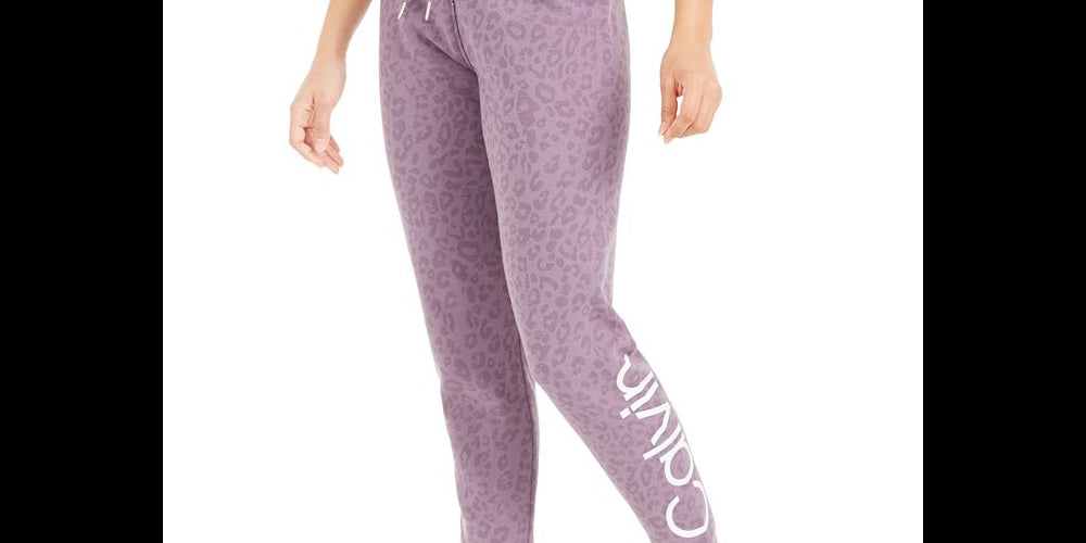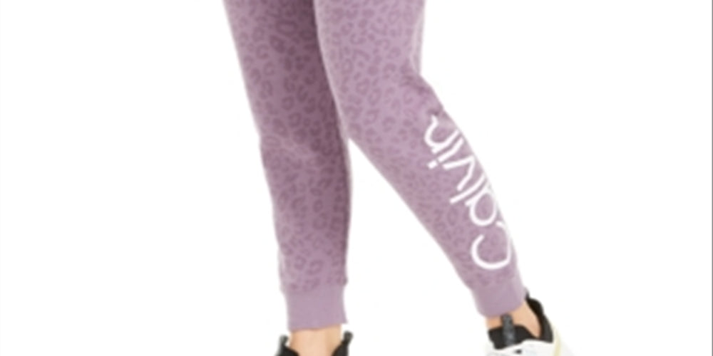 Calça jogger feminina Calvin Klein Performance com estampa animal e logotipo, roxa, tamanho médio