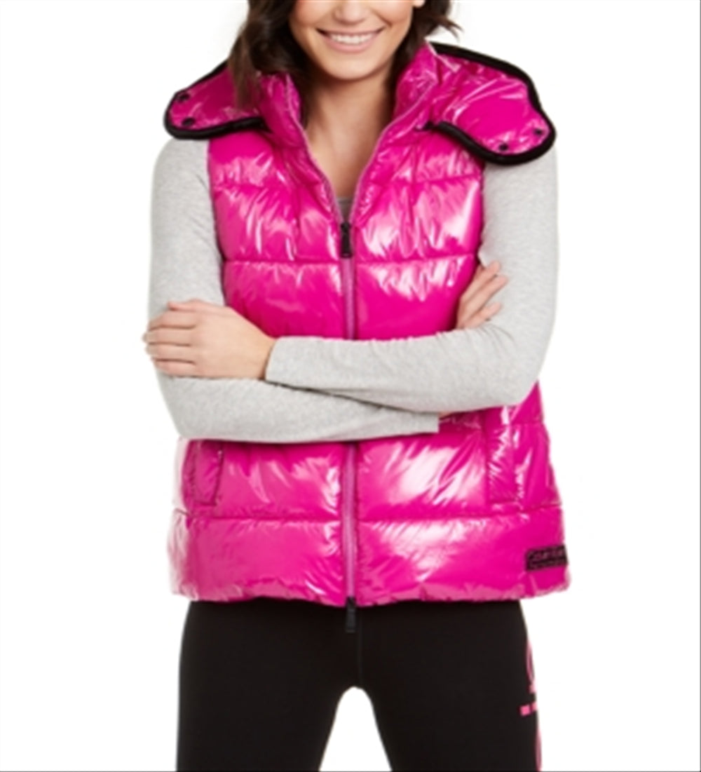 Calvin Klein Colete Feminino Performance Shine Padded com Capuz e Zíper Completo Roxo Tamanho Grande