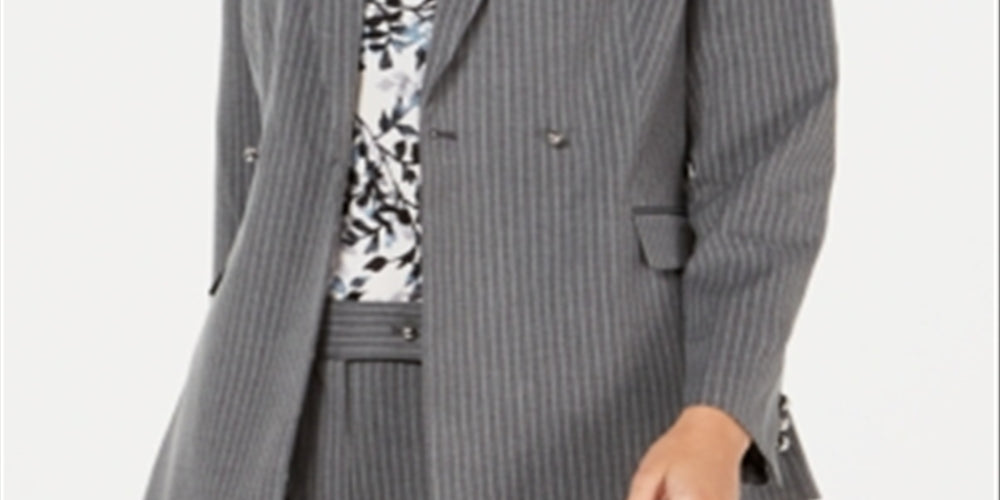 Calvin Klein Blazer feminino listrado abotoamento duplo cinza tamanho 14