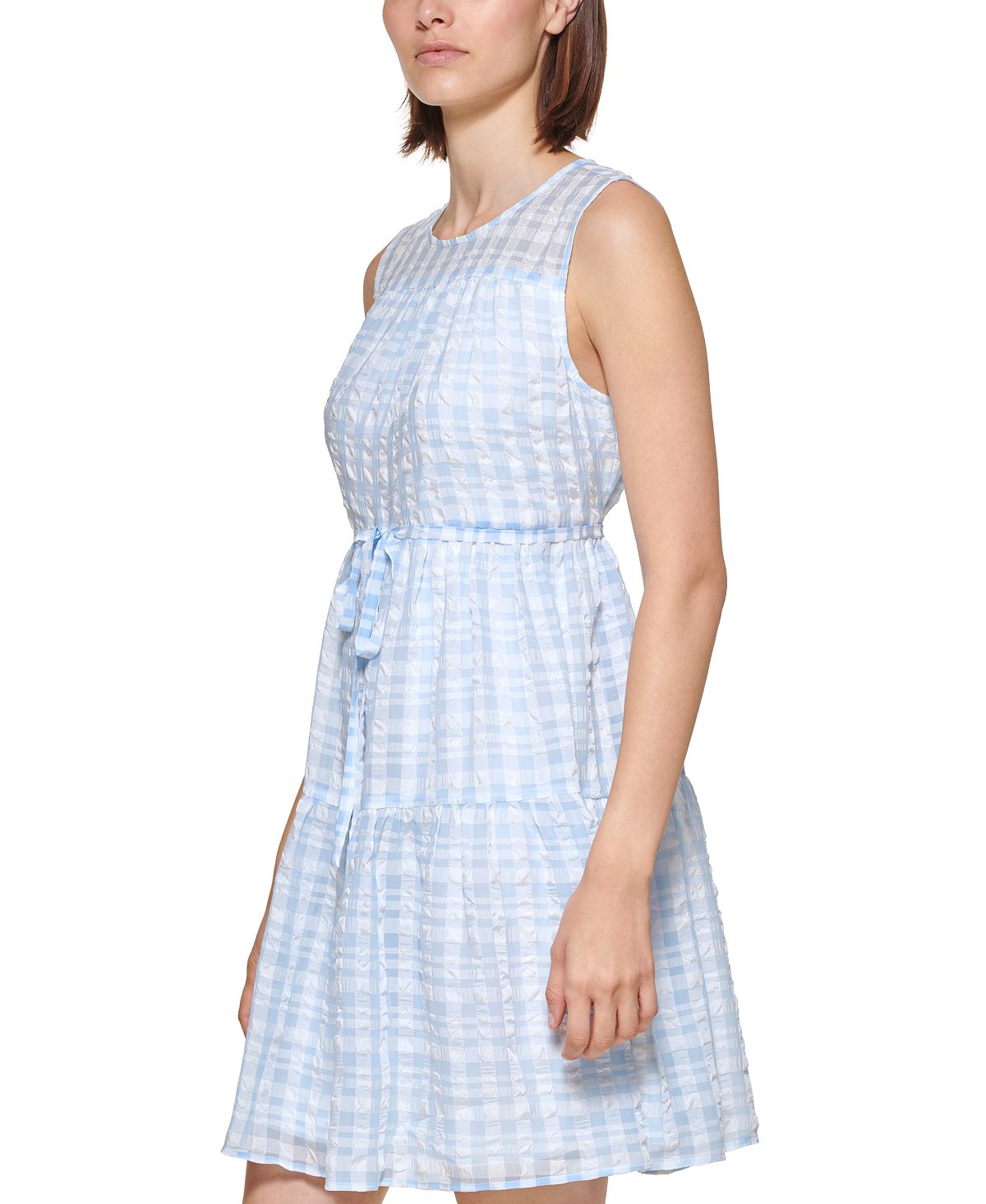 Crie um look clássico para a estação com o vestido xadrez da Calvin Klein | lindamente definido por uma silhueta em corte A. | Aproximadamente 86 cm de comprimento, do centro do pescoço até a bainha. O comprimento é baseado no tamanho 6 e varia 1/4 entre os tamanhos | Ajustado no peito e na cintura; a saia estruturada em corte A assenta ligeiramente sobre os quadris | Chiffon; Tecido liso | transparente | Decote redondo; Silhueta em corte A