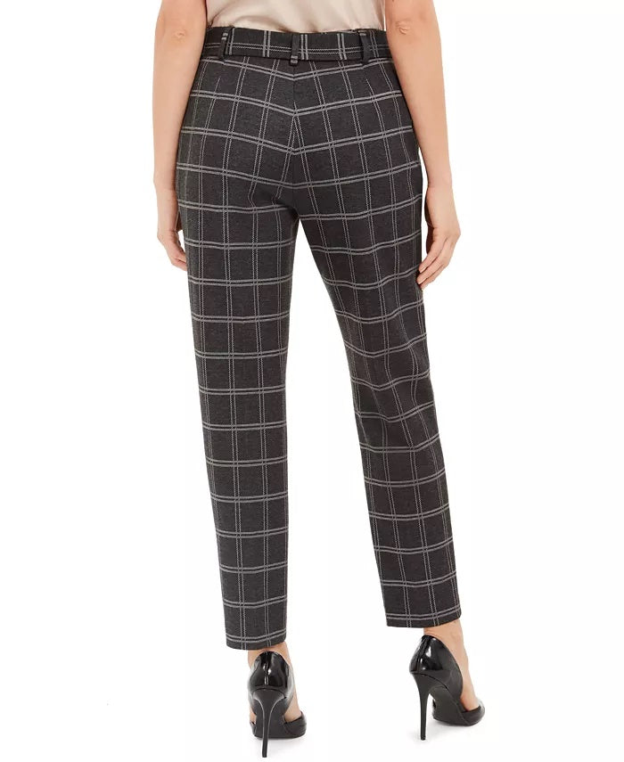 Calça feminina Calvin Klein xadrez com amarração na cintura, slim fit, prata, tamanho 12